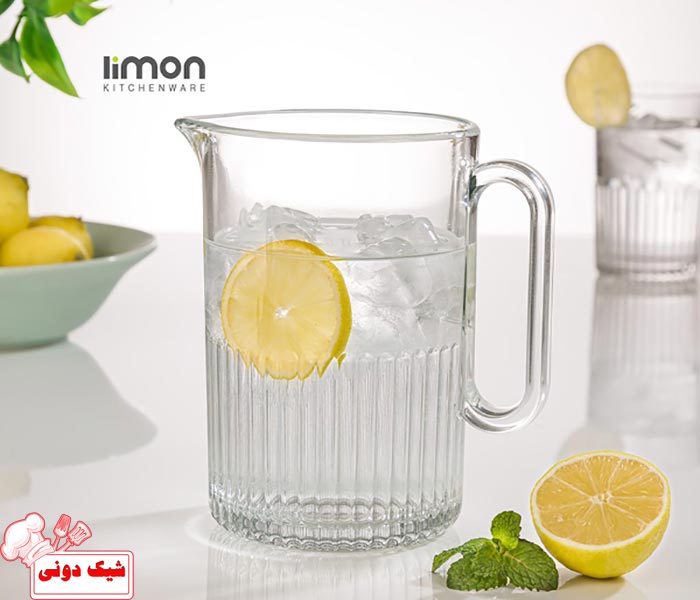 • ست پارچ و لیوان شیشه ای شیاردار چاپدار لیمون 2318